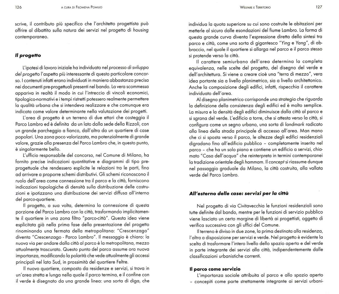 WELFARE E TERRITORIO 2009-06-01 The expressive value of collective behavior Services and composition of urban design in the Civitavecchia district in Milan. Related projects ABITARE MILANO - VIA CIVITAVECCHIA Attachments welfareeterritorio.pdf