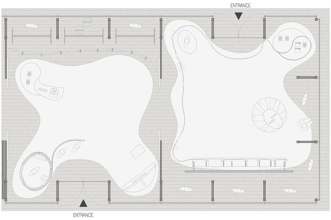 Utilizzando il mare come metafora, il nostro design concept incarna la dualità del marchio: intimo e infinito, immobile e turbolento, rassicurante e ruvido. La natura guida le scelte dei materiali, mentre i mobili dalle onde sinuose, gli elementi trasparenti, l'illuminazione a contrasto, gli effetti sonori e le proiezioni d'acqua si combinano per creare uno spazio insolito, sorprendente e intangibile.