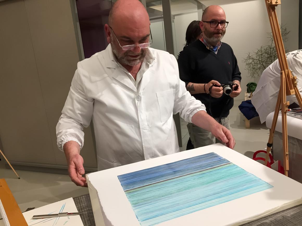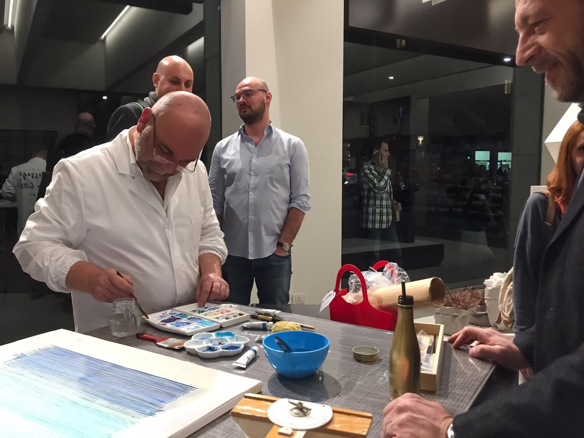 Four evenings during which four designers for each evening interpreted the theme of Water through the live realisation of a pictorial work using the most diverse techniques. Sixteen designers, four live performances and a single message: to raise public awareness of the responsible consumption of a precious commodity, water.