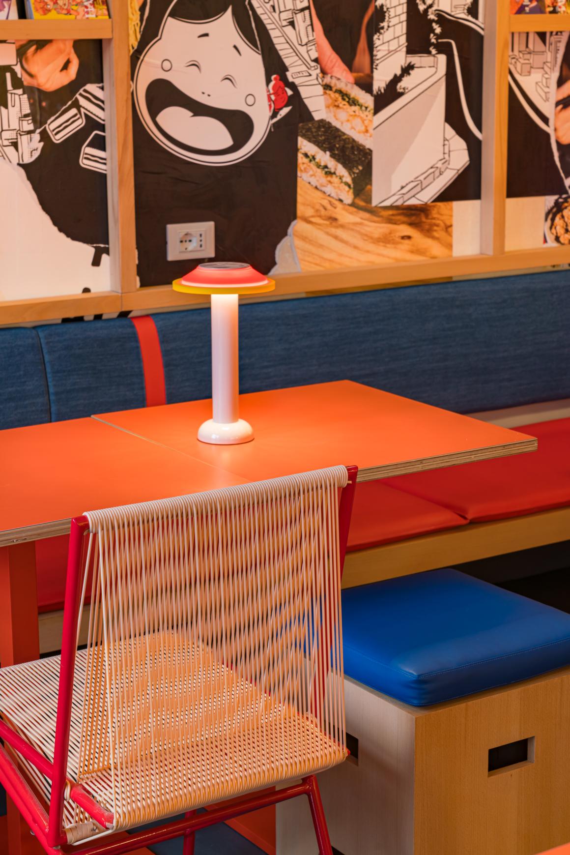 In order to create an experience that connects the pop culture of manga with that of traditional cuisine, our project emphasises the typical characters of the design and culture of the Rising Sun. Starting from the atmospheres and streets of Tokyo filled with lights, signs, street food places and chromatic overlays that we find in the wallpapers and multicoloured lamps.