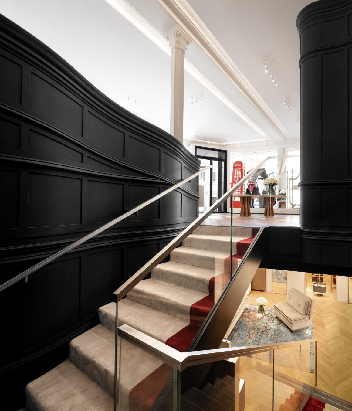 The boiserie becomes the boutique’s iconic element: black with a matt finish, it acts as a framework for the refinement of Delvaux creations. A shade used exclusively in this London space, pointing up its elegance and personality.
