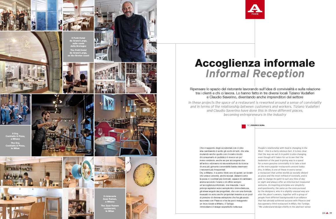 In these projects the space of a restaurant is reworked around a sense of conviviality and in terms of the relationship between customers and workers. Tiziano Vudafieri and Claudio Saverino have done this in three different places, becoming entrepreneurs in the industry.