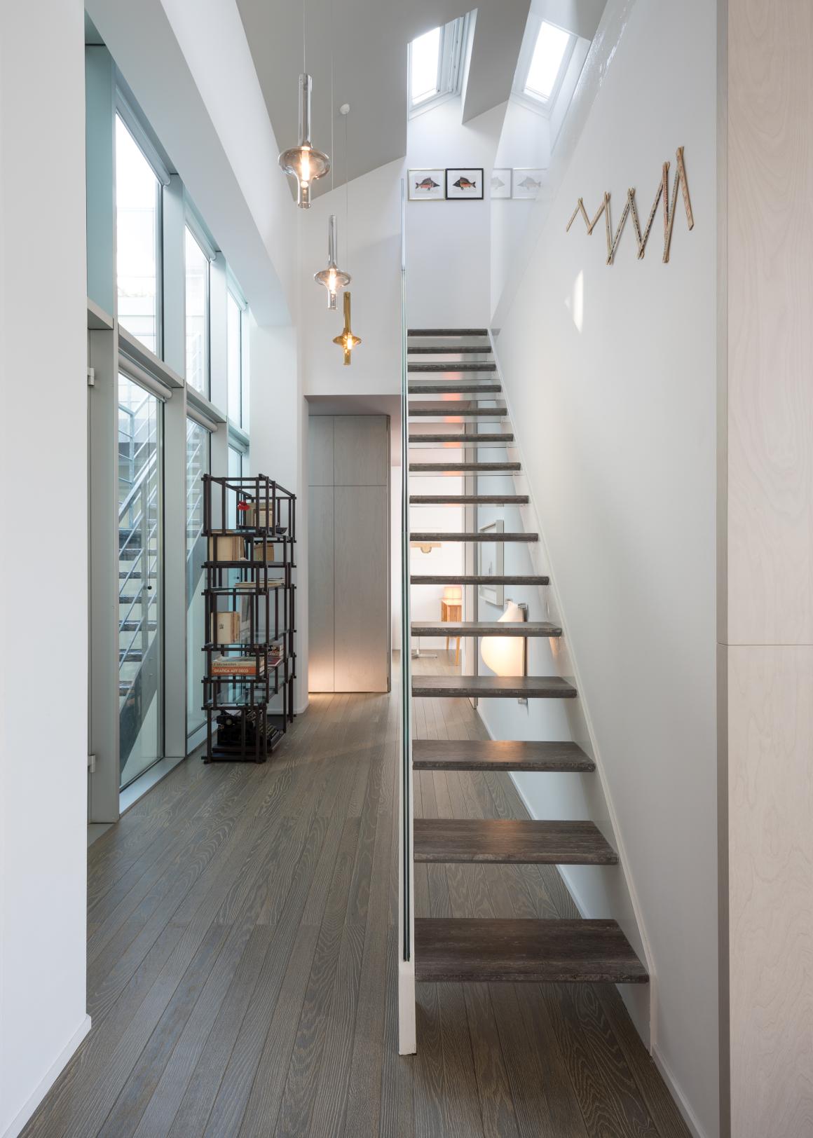 这栋住宅单元由一栋20世纪的工业建筑改造而来,其顶部线性的体量与彩色玻璃大窗的设计语言,延续了建筑的根源记忆。