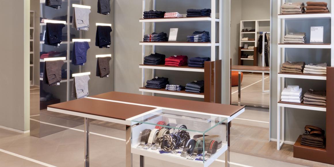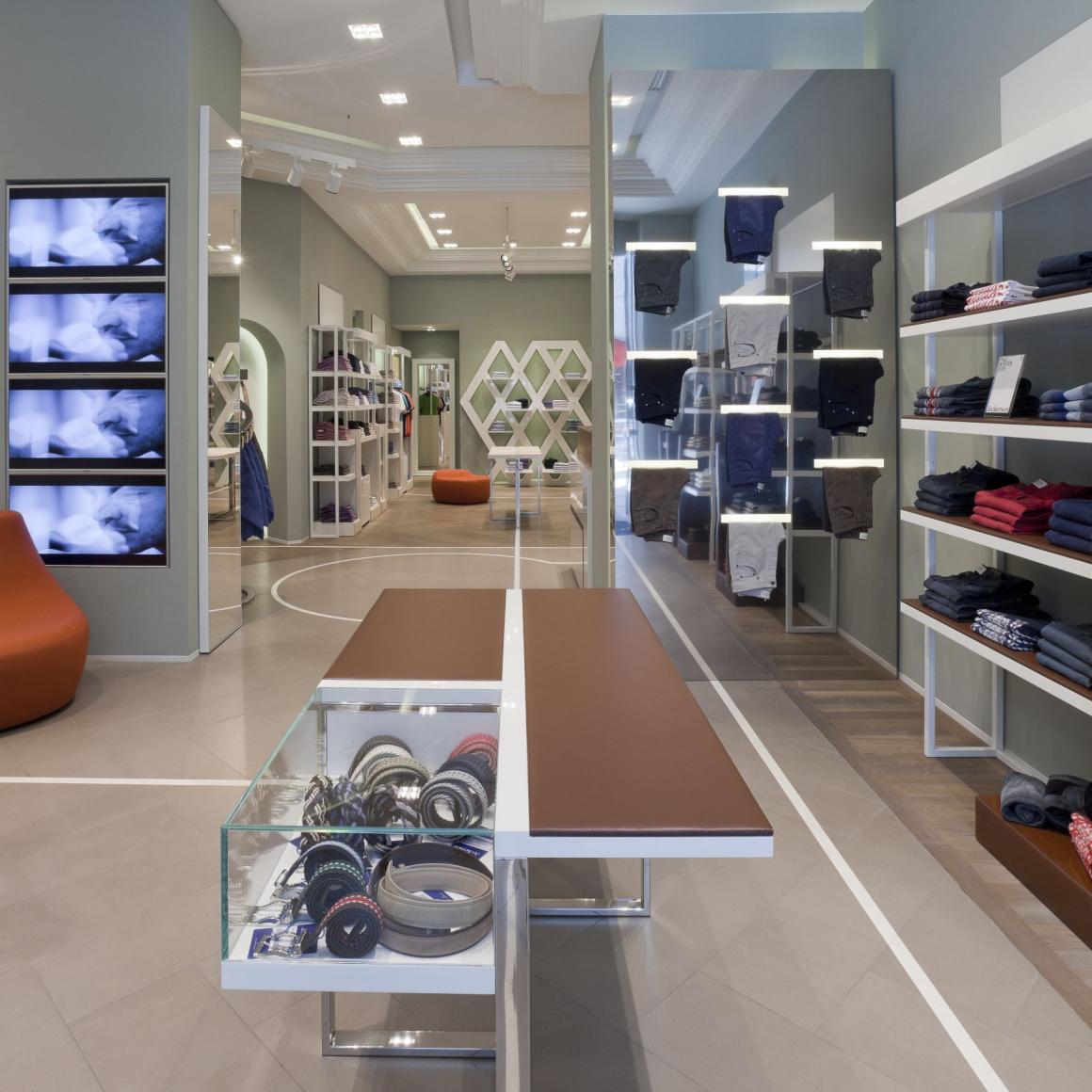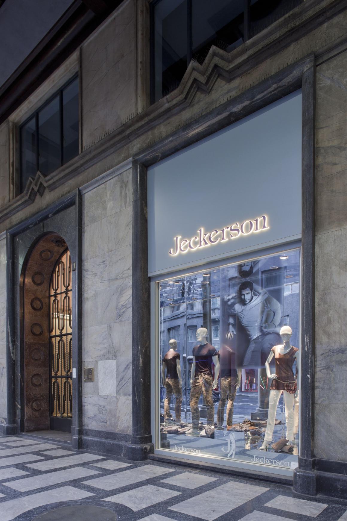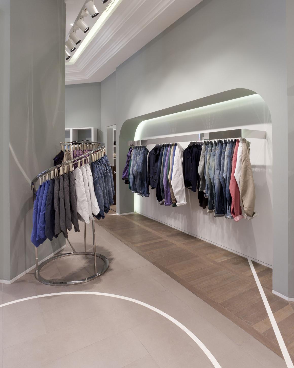 Jeckerson 品牌店铺的设计概念通过材质与色彩的强烈碰撞,鲜明地体现了品牌的当代精神。烟熏橡木和混凝土地板,搭配皮革饰面和白色烤漆家具,在灰绿色墙面的映衬下形成极具张力的视觉对比,有效地将自然元素与都市色调融为一体。利落的线条切割出充满动感的空间环境,突显服装色彩的多样性,凸显了品牌的运动精髓。经典元素与现代特征在整个空间中达成精妙平衡,形成和谐共生的整体美学。
