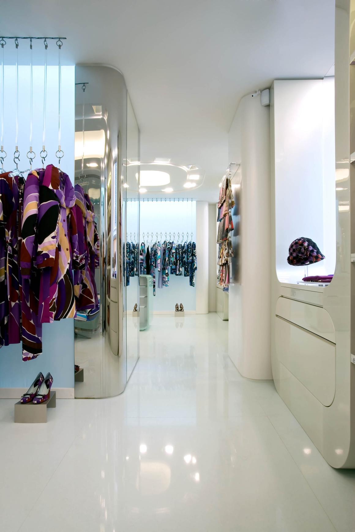 这一重要空间刻意采用中性背景设计,为突显Pucci万花筒万花筒般绚丽多彩系列产品的活力设计 室水平与垂直元素的和谐融合,融合成一个单一、流动的实体,贯穿整个空间环境。从纽约到米兰,从东方到美国,Pucci精品店已入驻全球多个时尚之都,成为这些城市中不可或缺的奢华地标。