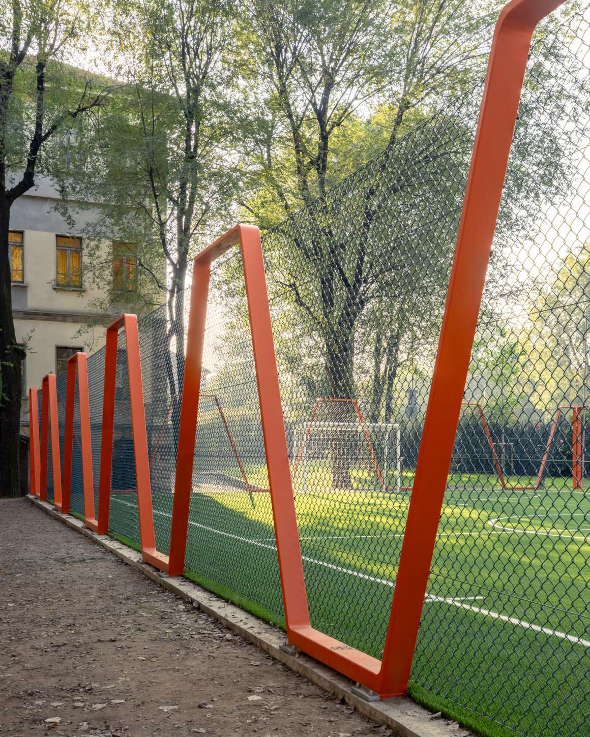 该项目聚焦于对两处户外运动设施的全面升级改造,它们分别是位于米兰Rinnovata Pizzigoni 综合学校(Istituto Comprensivo Rinnovata Pizzigoni)内的Campi Guaineri——包括一个五人制足球场和一个多功能运动场。