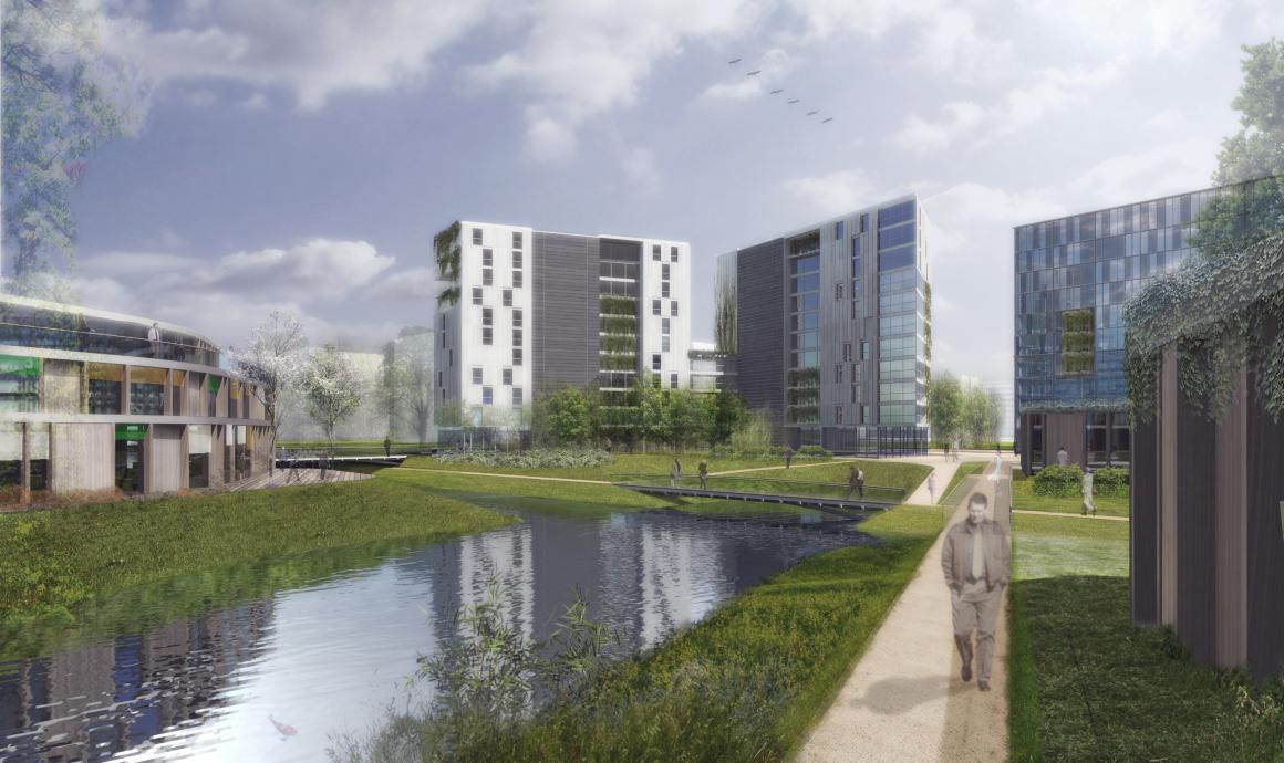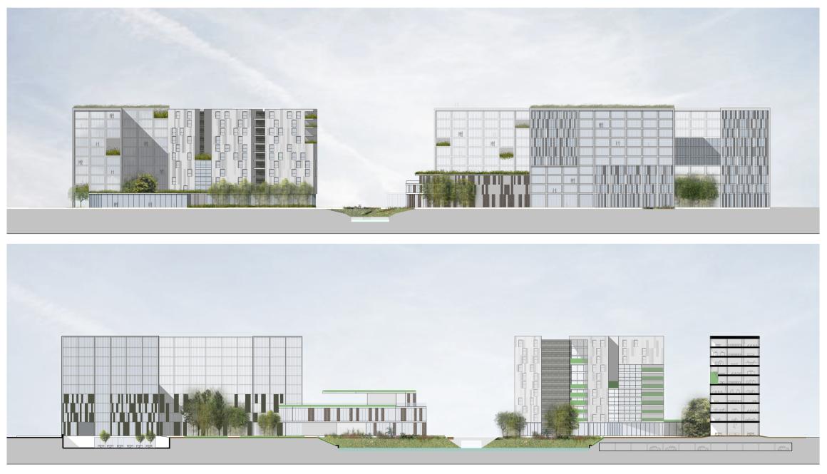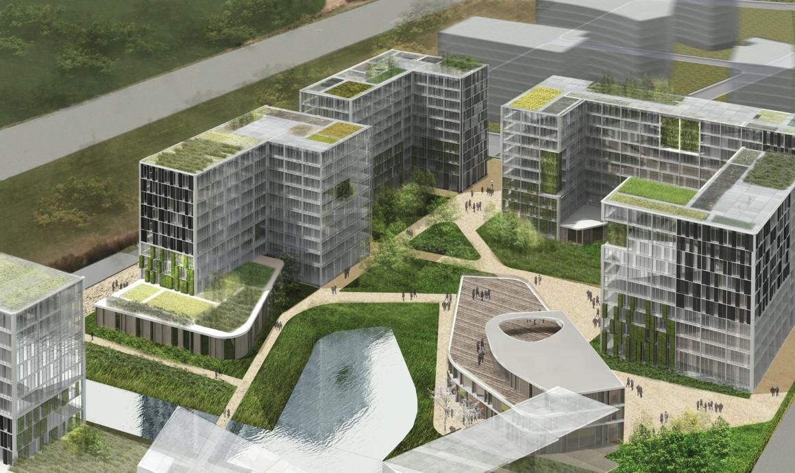 Con l'80% del volume totale costruito, il quadro degli uffici contrasta con il cuore organico e libero del quartiere. Il progetto del giardino è parte integrante della nostra strategia di spazi aperti, che favorisce l'immagine di un'oasi di alta qualità ambientale all'interno del contesto urbano. Un elemento chiave della nostra progettazione è stato l'impegno a raggiungere un elevato standard di comfort ambientale e un sostanziale risparmio energetico nel funzionamento del quartiere.