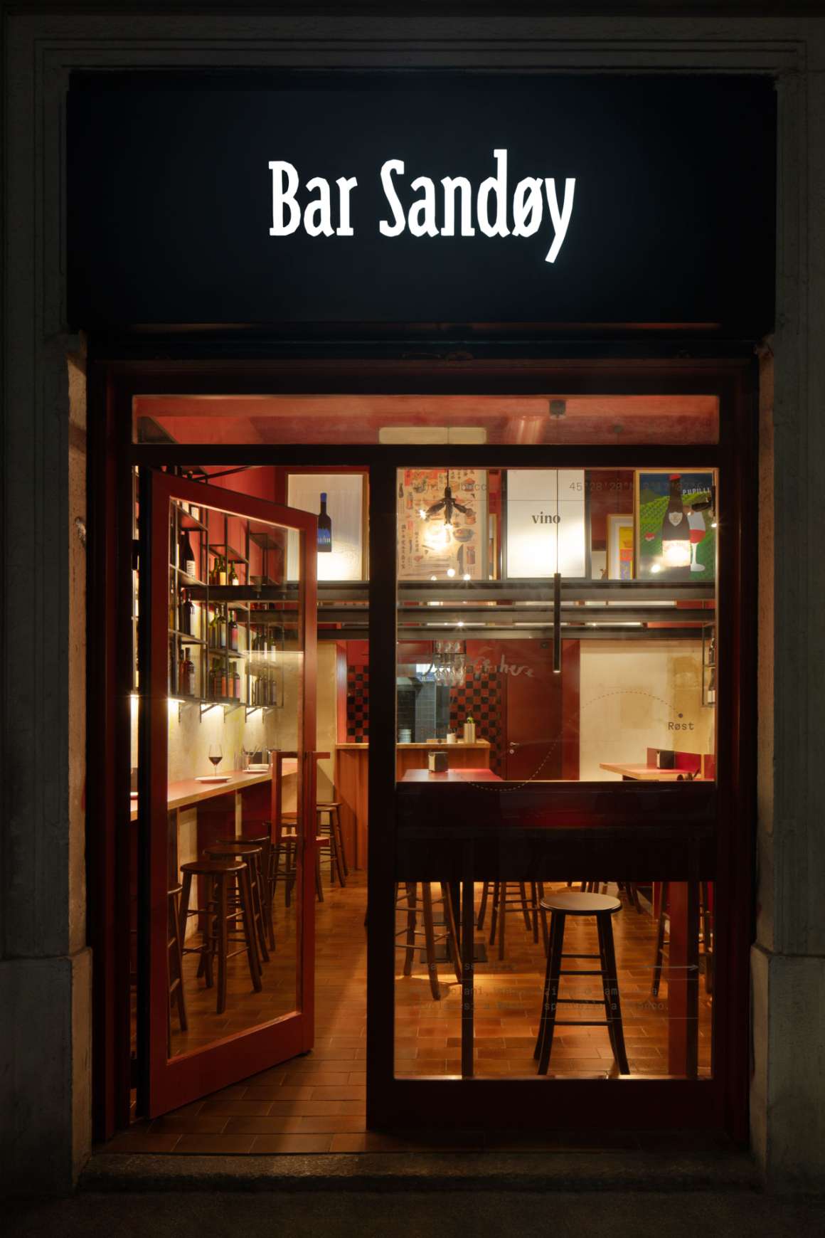Our interior design project transformed a former 1960s electrical supply shop in Milan’s Porta Venezia district into a contemporary and informal wine bar. Located in Port Venezia district, Bar Sandøy is named after a small Norwegian island and serves as a new informal "landing place" within Røst, our Milanese gastronomic archipelago. Our intervention is rooted in the balance between respecting existing features and a contemporary vision of hospitality , resulting in an intimate and vibrant space.