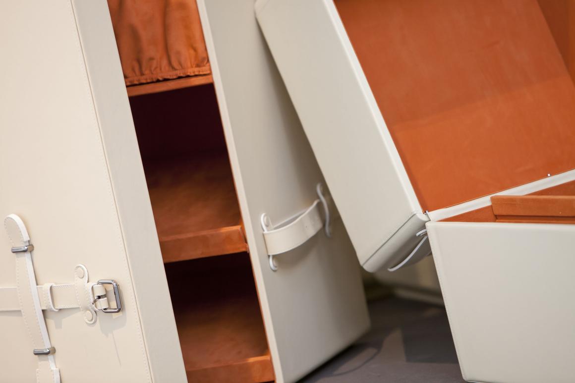 Not a trunk neither a closet. Unique while modular. Static and movable at the same time. A technological and opulent portable wardrobe, customizable in any detail and finishing.