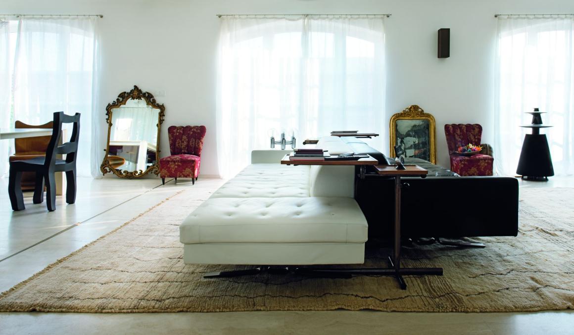A three-level loft has been reimagined as a contemporary middle-class home, where family heirlooms and designer furniture live together. The interior showcases 20th-century classics and custom artworks, like pieces by Piet Hein Eek designed exclusively for the loft. The layout provides spaces for different and even opposing moods, from a gathering area to a room with outdoor views, as well as intimate, secluded spots for privacy and reflection.