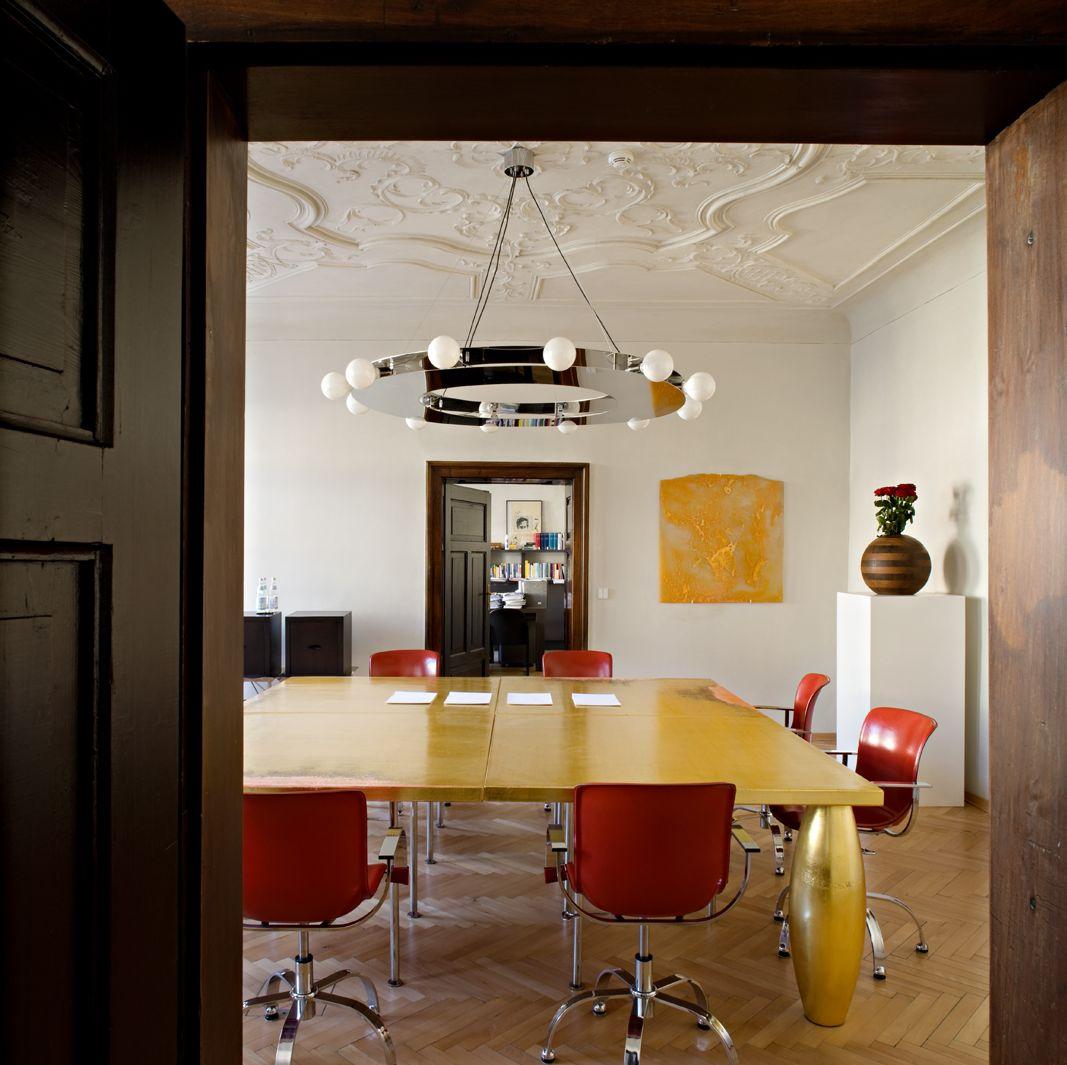 A Baroque Tyrolese palace in the centre of Bozen. An office with mostly custom made furniture that interprets the excessive and occasionally amusing spirit of the Baroque era in a contemporary way. Past and present work together highlighted by contemporary art pieces.
